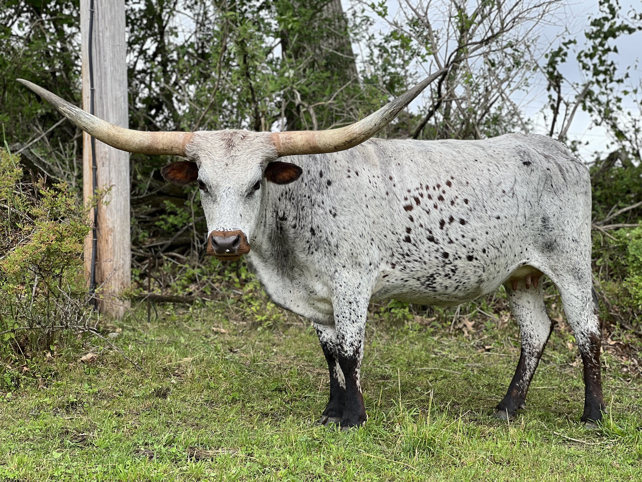 Diamond is a well built heifer who has excellent horn growth. Currently projects into the mid 80s TTT at maturity. She has been exposed to MC Mr. Wonderful for a spring/ summer 2026 calf