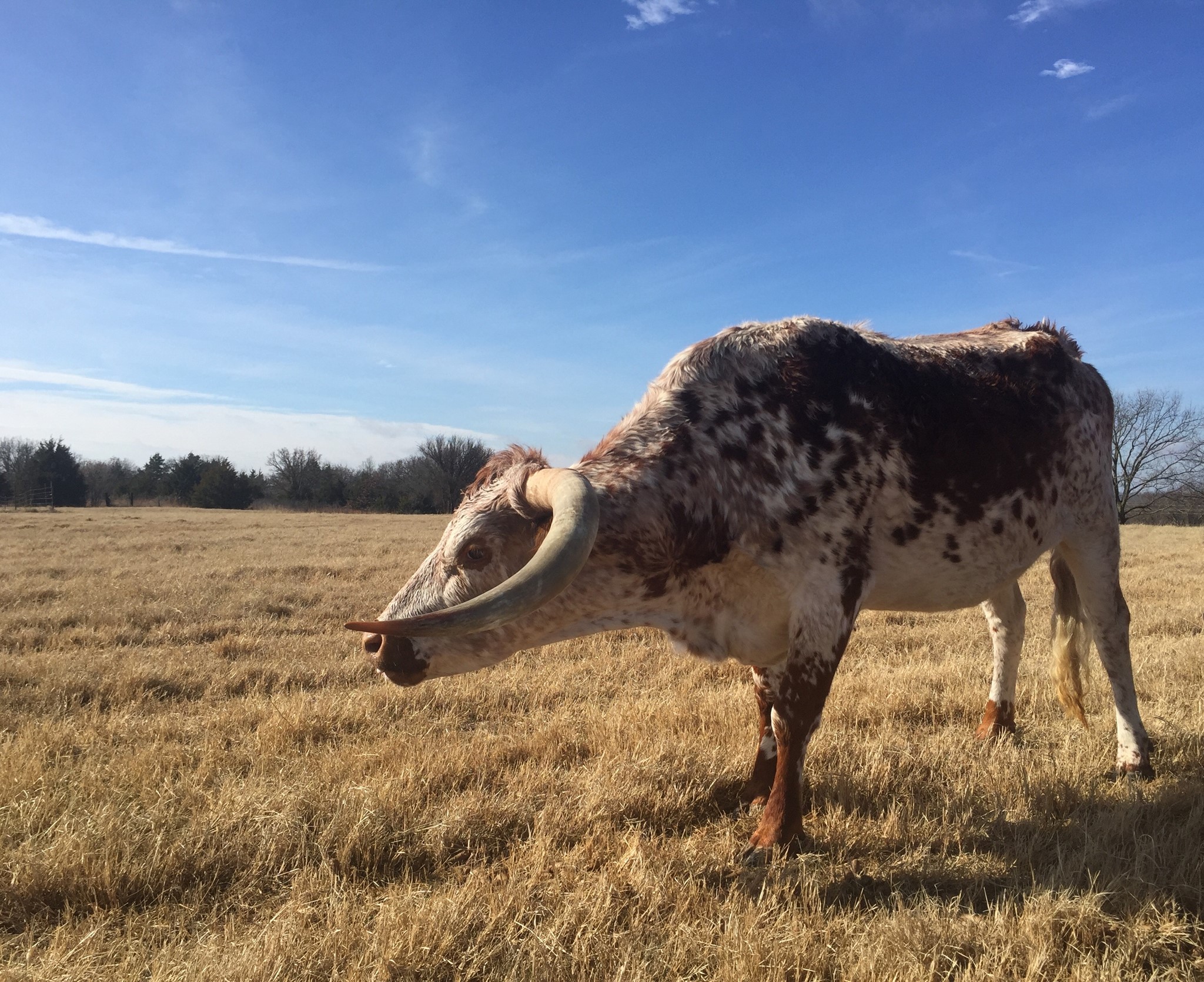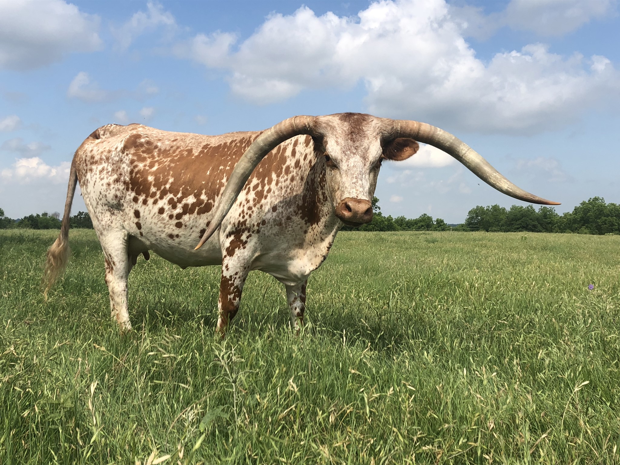 Very productive female. She hits the reproductive target every year, outproducing herself. Her pedigree brings you HCR, Maximus ST, Iron Mike ST, & Freight Train ST on the top side. Her grand dam, (7LS Maxie Miss), is nearly an 80" TTT cow with very lateral horns. Nurse Maxie's horns were frozen way up north, giving her this unique look. We believe she's a wonderful asset to our breeding program, after all, her calves won't mind which direction her horns are growing. The genetics are here! Millennium Futurity Eligible.