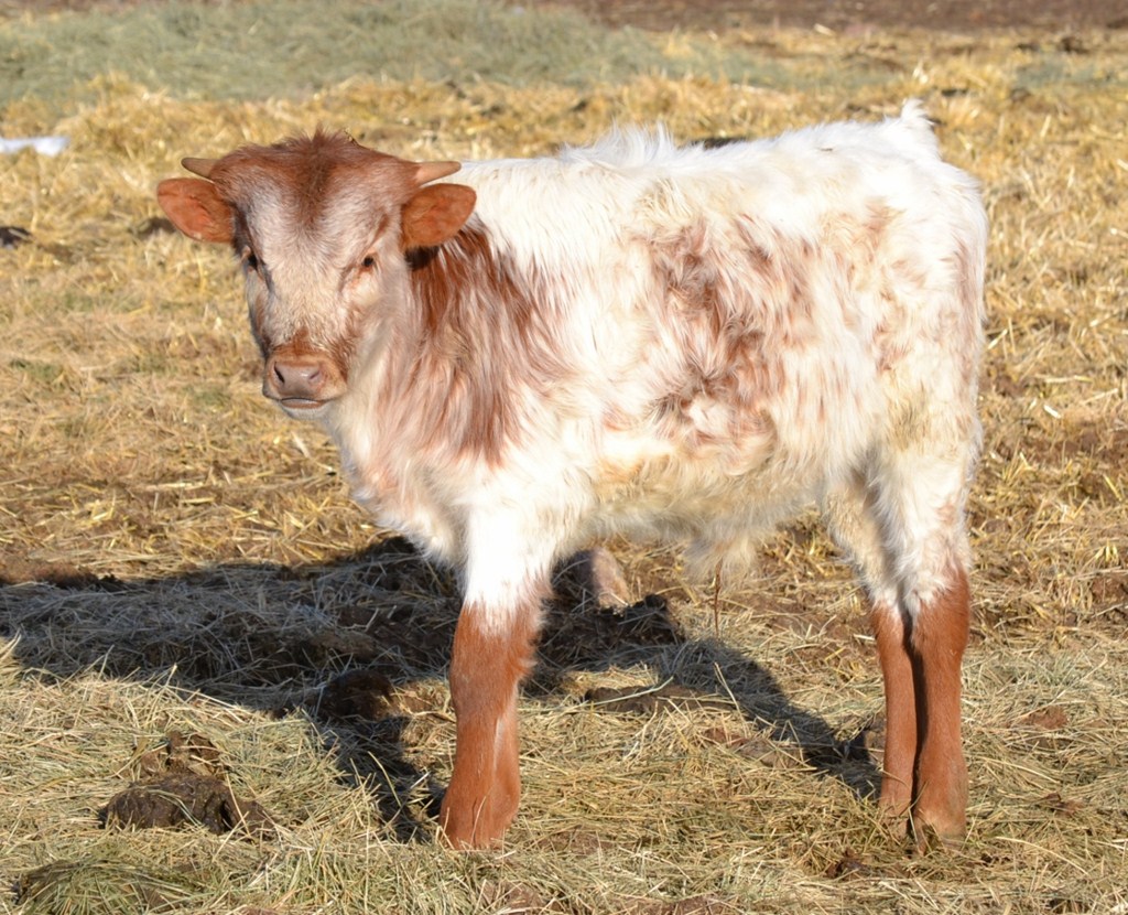 Flashy Concealed Weapon bull calf out of a HSC Bronze winning mother. Great pedigree packed with 80" animals. Look at the horn set!