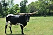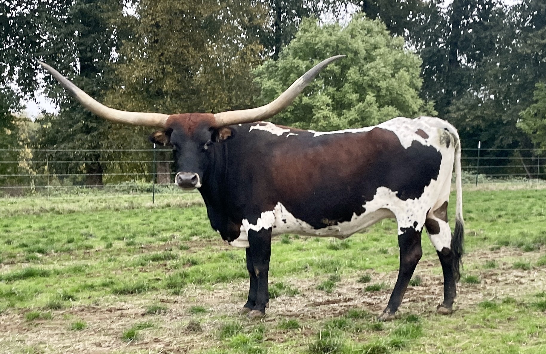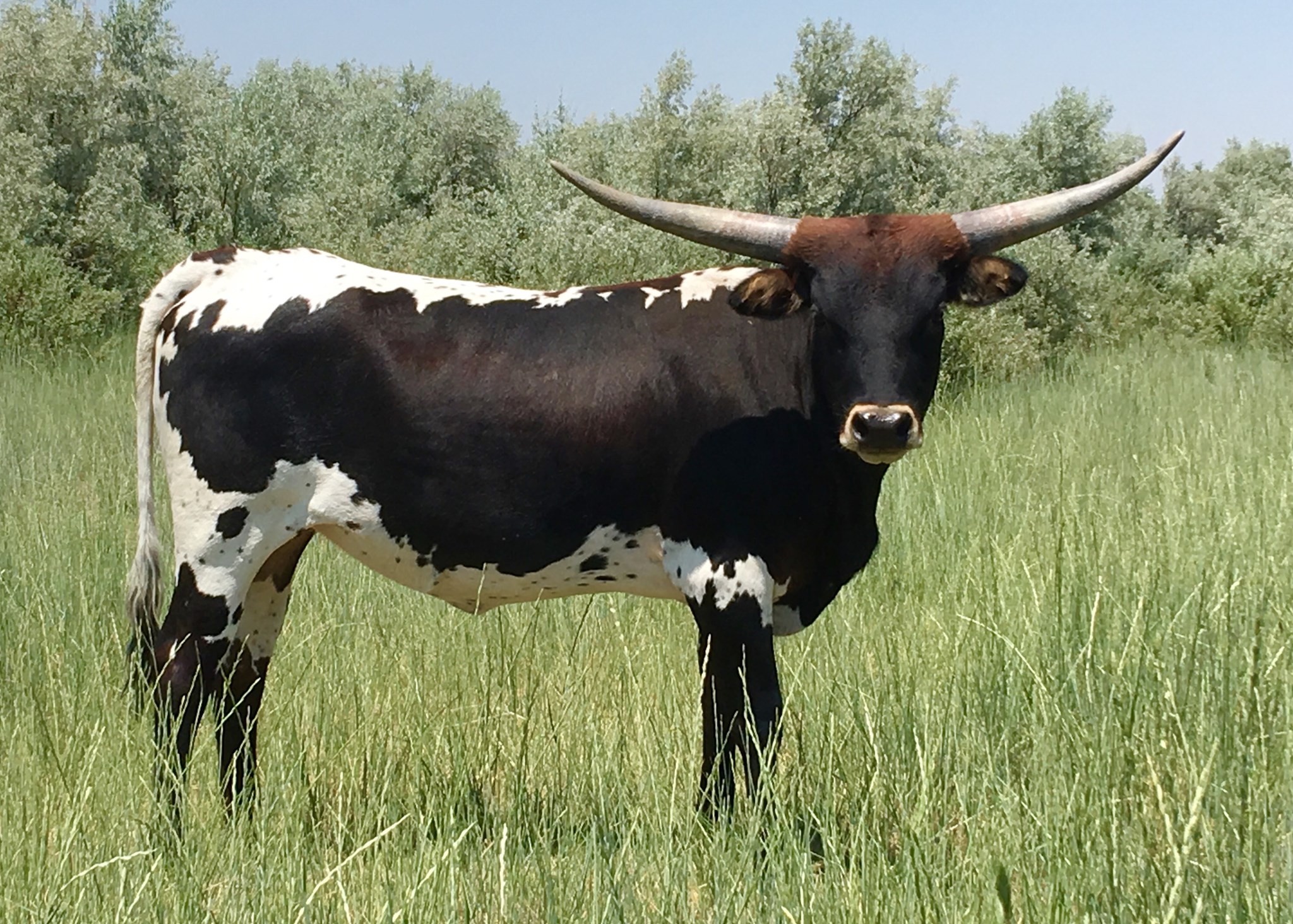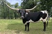 PG Magic Sequela is a beautiful chocolate and white cow bred for horn! Look at that cow power! Awesome pedigree and horn set along with great confirmation.